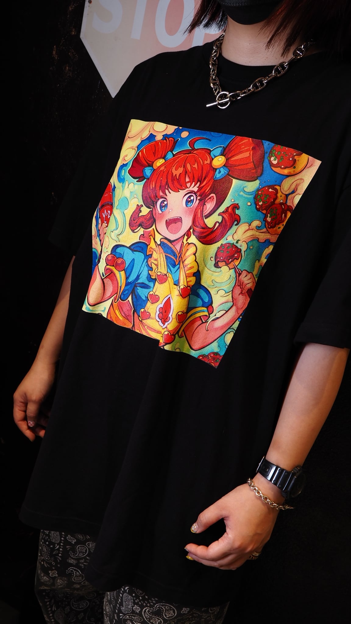 フロントには、どろソースを手にした当店のイメージキャラクター「こたこちゃん」を大胆にプリント。袖口には“GOONIES”の文字をあしらい、ポップかつストリート感のあるデザインに仕上げています。